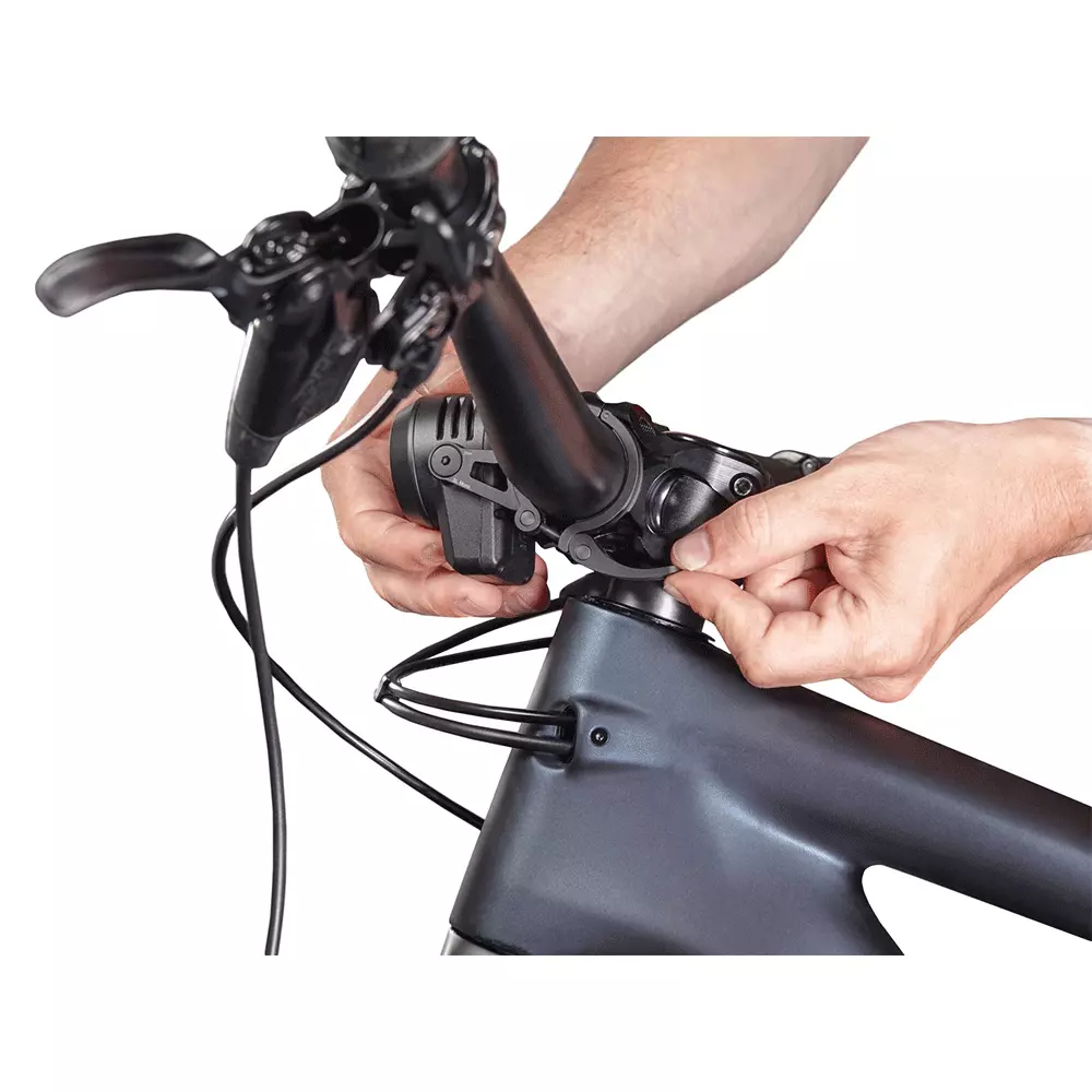 - Schnell montiert: Die SL Mono wird zuverlässig von einem CNC-gefrästen Aluminiumschnellspanner am Lenker gehalten. Die zentrale Montage vor dem Vorbau schaut nicht nur gut aus sondern minimiert auch das Verletzungsrisiko im Falle eines Sturzes. Die Gummierung auf der Innenseite sorgt für perfekten Halt und verhindert Kratzer, auch bei schneller Montage, zuverlässig.